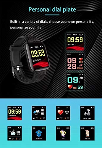 Generic - ساعة ذكية 116 بلس مع معدل ضربات القلب، اسود