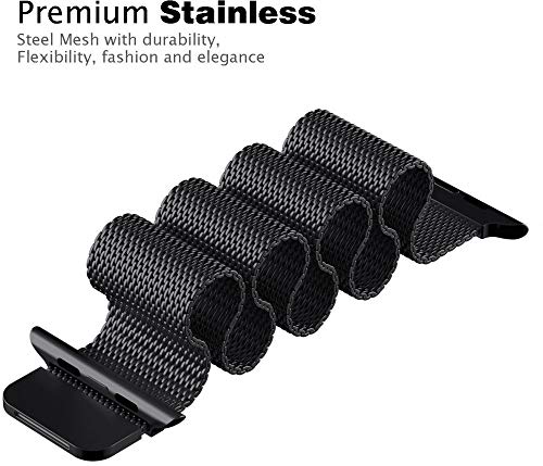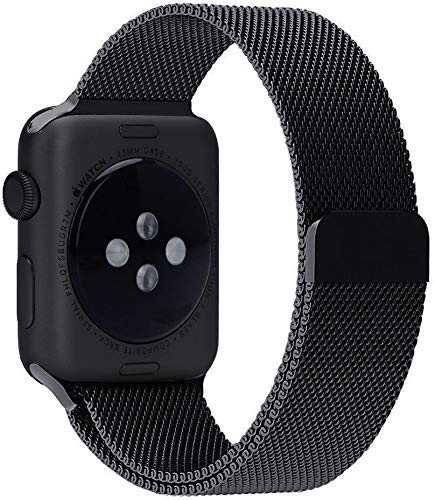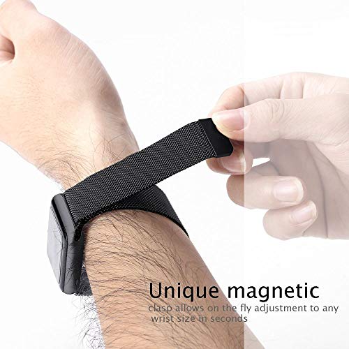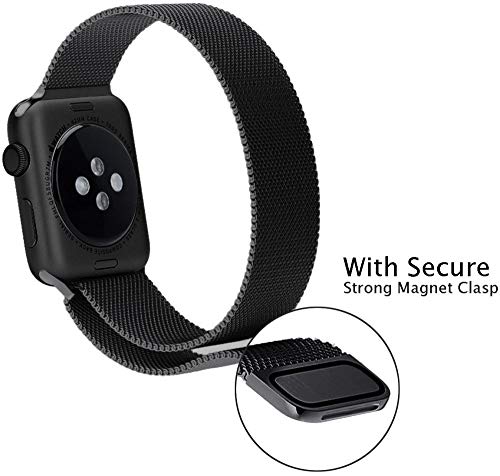 Generic - سوار ساعة ذكية شبكي حلقي ستانلس ستيل 42 ملم بمشبك اغلاق مغناطيسي من بيكيل، اسود