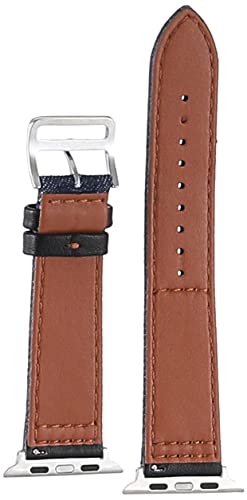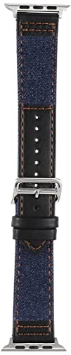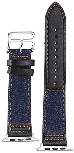 other - سوار الساعة الذكية لساعة ابل - جلد اسود وسوار جينز، ازرق غامق 40/38 ملم