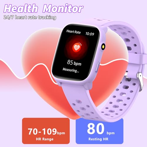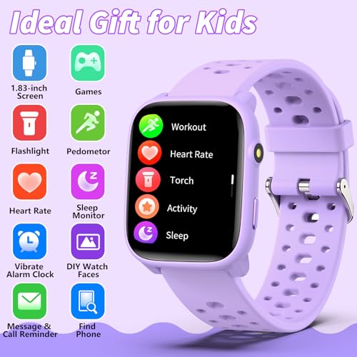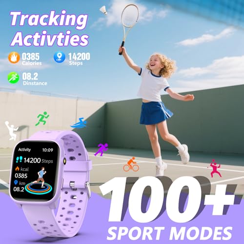ModaWin - ساعة ذكية للأطفال مقاس 1.8 بوصة لتتبع اللياقة البدنية وعداد الخطوات ومعدل نبضات القلب ومراقبة النوم ومقاومة للماء بتصنيف IP68 وعداد خطوات، ألعاب أحجية للبنات والأولاد والمراهقين من سن 6-16 سنة