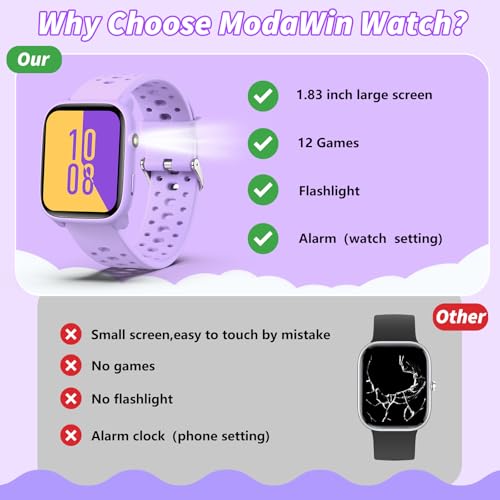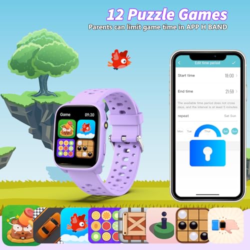 - ألعاب الأحجيات مع تحكم الوالدين - ساعة الأطفال من موداوين مع 12 لعبة مضحكة يمكن أن تساعد في تدريب قدرة طفلك على رد الفعل وقدرته على الحساب. لعبة وهدية مثالية للأولاد والبنات من سن 8 إلى 10 سنوات. هناك وظيفة دعم للرقابة الأبوية التي يمكن أن تحد من وقت لعب الأطفال في تطبيق "H Band" (يدعم أيضًا قفل اللعبة طوال الوقت).
