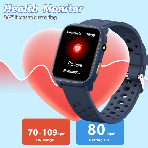 ModaWin - ساعة ذكية للأطفال مع 12 لعبة ألغاز ساعة تتبع اللياقة البدنية بشاشة 1.83 بوصة مراقبة معدل ضربات القلب والنوم عداد خطوات منبه مصباح يدوي للأولاد من عمر 6 إلى 12 سنة