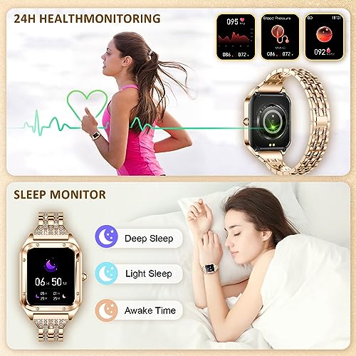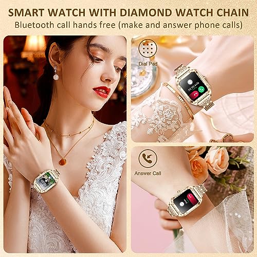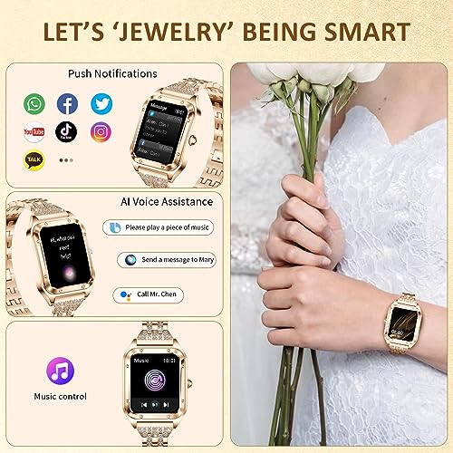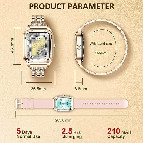 - 【هدية مثالية】 الساعة الذكية الأنيقة الفاخرة هي هدية رائعة لنفسك أو لأختك أو أمك، فهي لا تستطيع ارتدائها كل يوم كمجوهرات سوار، بل تظهر اهتمامك بحياتهم الصحية، وتأتي مع سوار.