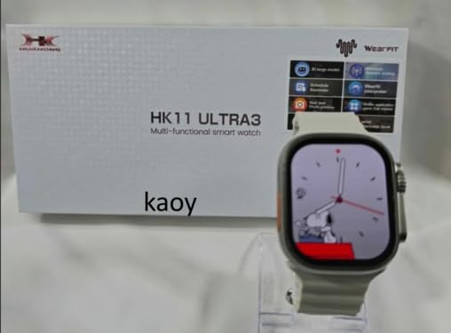 Generic - الساعة الذكية اتش كيه 11 الترا 3 (HK11 Ultra 3 ) تسجيل صوت من عليها-NFC- بلوتوث-عرض صورالألبوم- فتح الفيديو مباشر من عليها -تربط الساعة بالسماعه -حزامين (سيليكون + قماش)(رمادي)