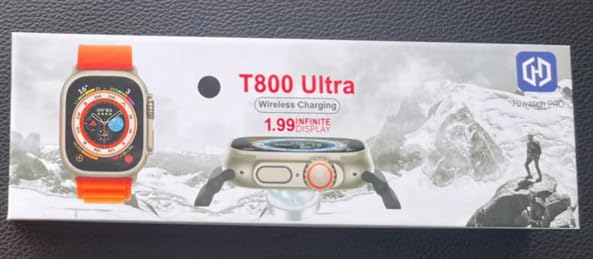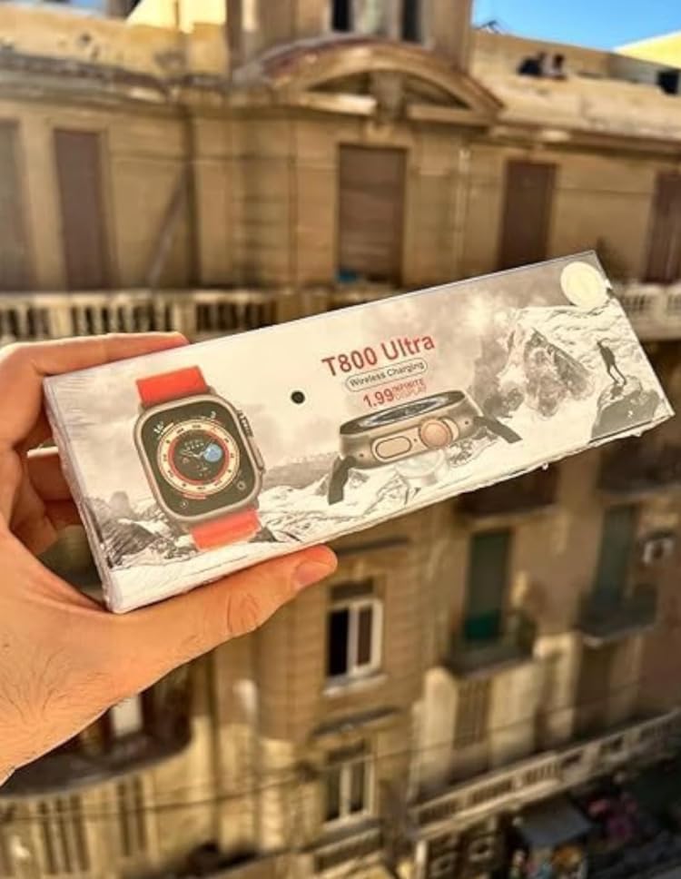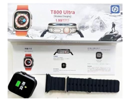 Generic - ساعة ذكية تي 800 الترا (T800 ultra ) بعمق مع مساعد تحكم بالفيديو وشحن لاسلكي سريع، شاشة تظهر المزيد بلوتوث، (أسود)