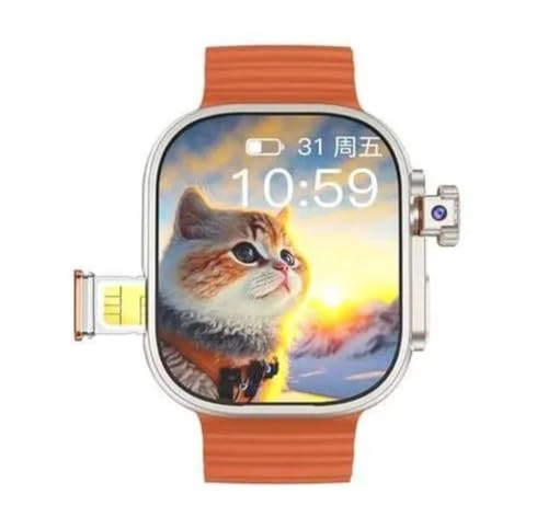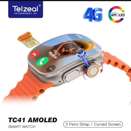 Generic - ساعة ذكية,TC41 AMOLED بشريحة شاشة منحنية 2.2 بوصة, نظام اندرويد, 5G, كاميرا دوارة, برتقالي, مع 3 أحزمة