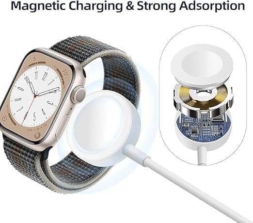Generic - كابل شاحن لاسلكي USB نوع C للساعة الذكية متوافق مع ساعة آبل سلسلة SE2/8/7/6/5/4/3/2/1/SE، شاحن سيارة مغناطيسي متوافق مع اي ووتش، سلك شحن محمول للسفر من النوع سي، لون أبيض