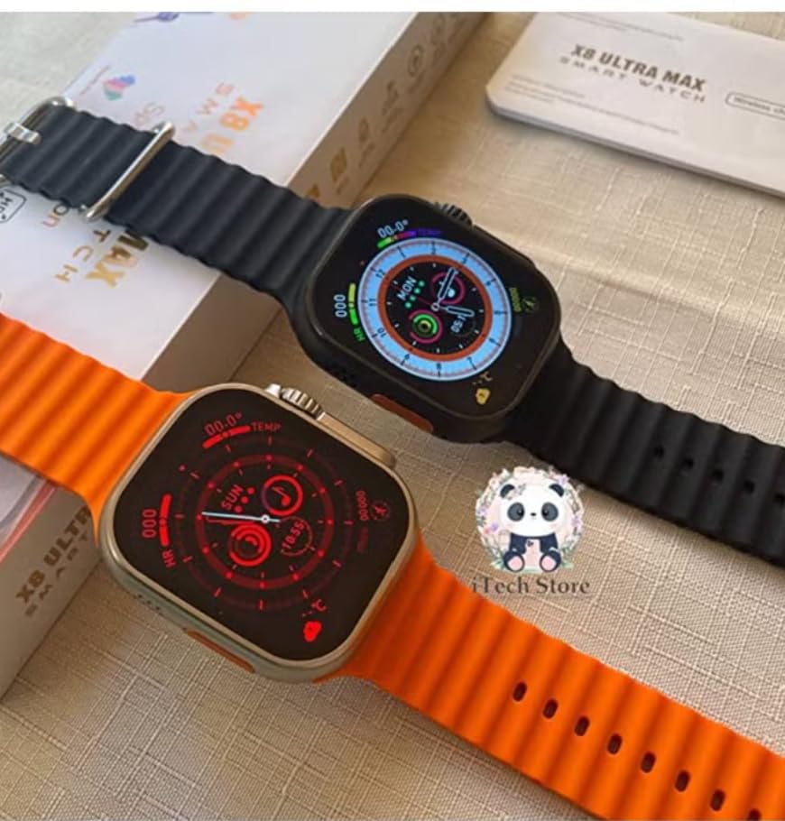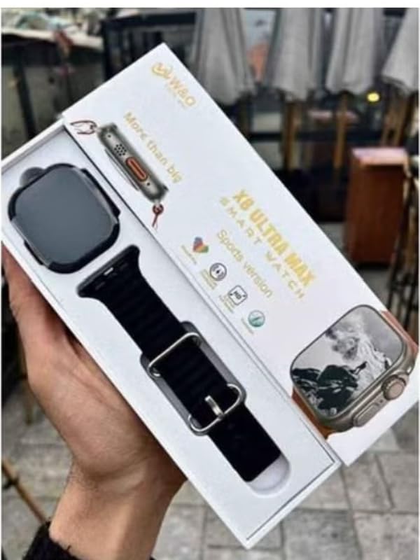 Generic - ساعة ذكية x8 ultra max الترا ماكس ان اف سي بتقنية مراقبة درجة حرارة الجسم والمكالمات بالبلوتوث مع شحن لاسلكي شاشة HD عالية الدقة تعمل باللمس 2.02 بوصة نظام تشغيل IOS واندرويد للرجال والنساءاسود
