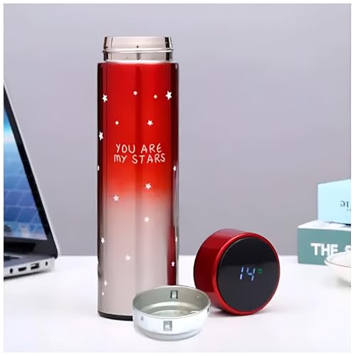 Generic - زجاجة مياه ذكية مع شاشة عرض درجة الحرارة مصنوعة من الفولاذ المقاوم للصدأ، ترمس مفرغ من الهواء بسعة 500 مل، قطعة واحدة