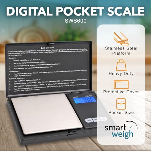 Smart Weigh - ميزان جيب رقمي من سمارت واي 600×0.1 جرام أسود سمار ويت 0.6 كيلوجرام