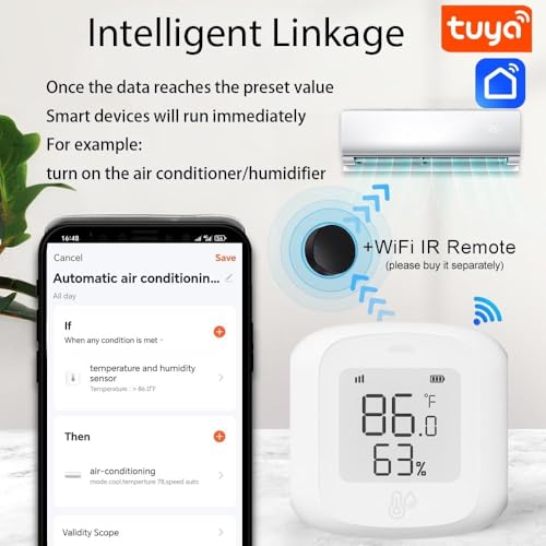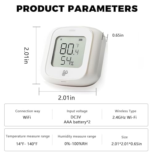 Generic - مستشعر درجة الحرارة والرطوبة الذكي واي فاي مع منبه المكالمات والرسائل النصية القصيرة 2.4 جيجا هرتز، ميزان حرارة رقمي لاسلكي مع تطبيق تويا وشاشة ال سي دي ويعمل ببطارية AAA