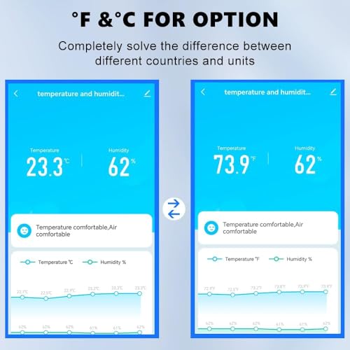 - استخدامات متعددة: مثالي لمراقبة درجة الحرارة والرطوبة في المنازل، والصوبات الزراعية، والمستودعات مع إمكانية تخصيص حدود التنبيه.