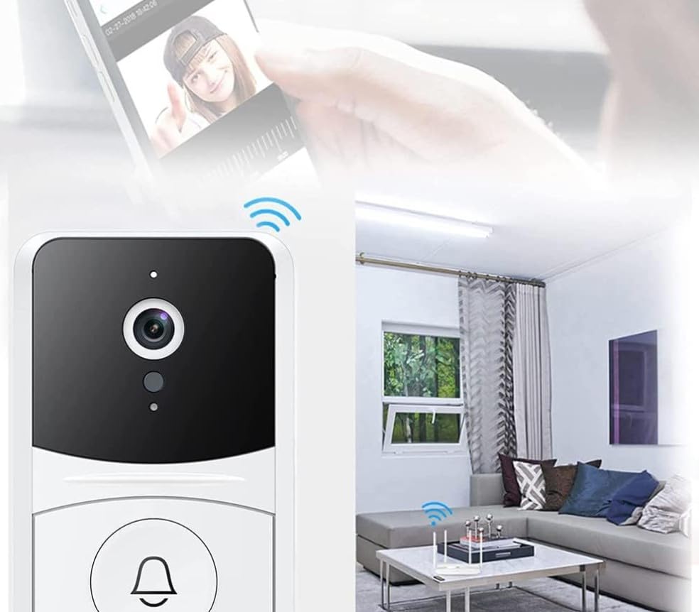 Generic - كاميرا جرس باب ذكية تعمل بالواي فاي مع رؤية ليلية، كاميرا HD عالية الدقة مع صوت ثنائي الاتجاه والتحكم عبر تطبيق الموبايل، أبيض
