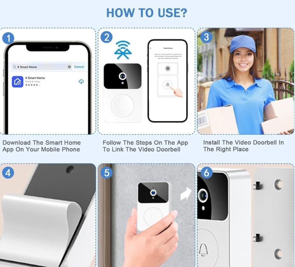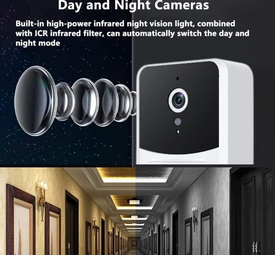 - كاميرا HD عالية الدقة: توفر كاميرا الفيديو HD عالية الدقة لقطات واضحة للغاية للزوار والأنشطة أمام باب المنزل