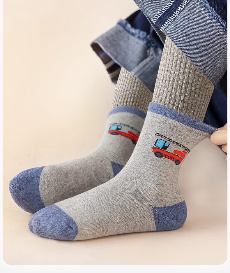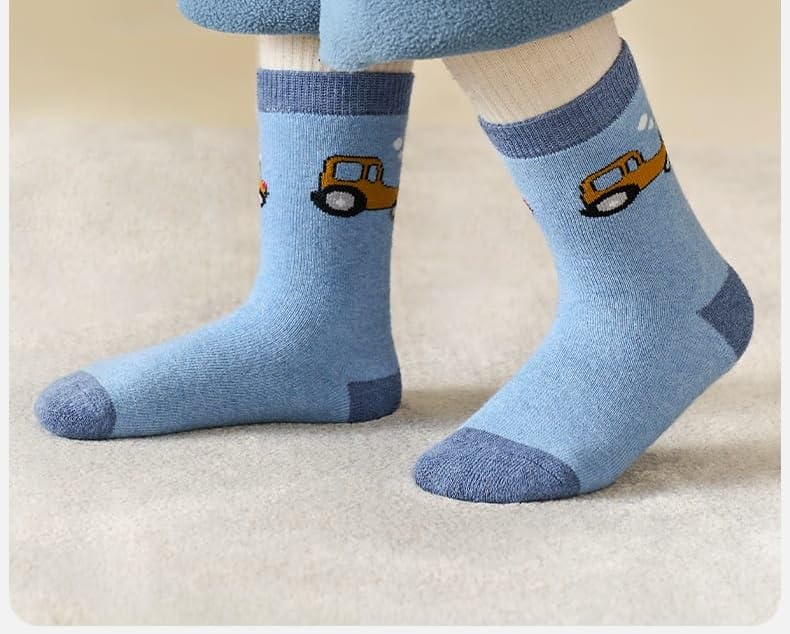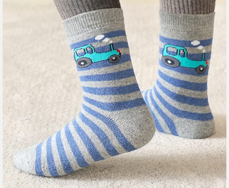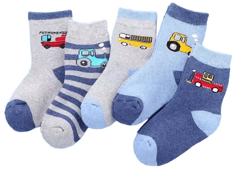 SMARTEDGE - جوارب سمارتيدج اطفالى، بطبعة عربيات الكاحل، جوارب شتوى مبطن من الداخل ، تصميم جديد، مقاسات ميديم ، 5 أزواج مع هدية، متعددة الألوان.