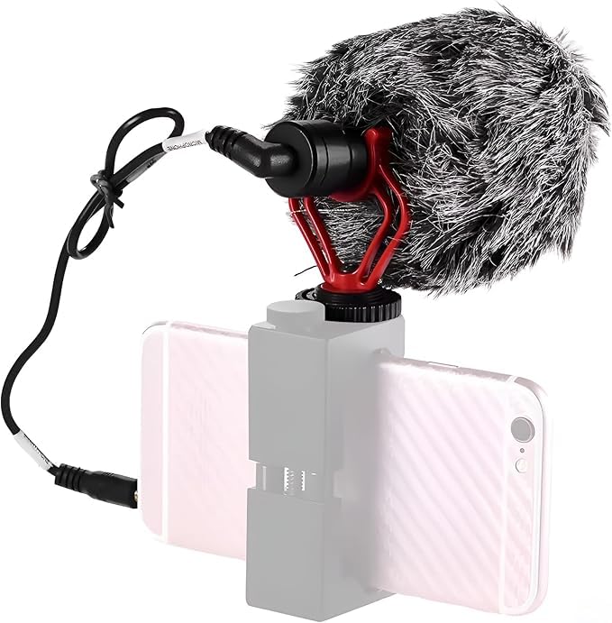 Generic - ميكروفون فيديو للهواتف الذكية مع واقي من الرياح، احمر واسود، حامل هاتف عالمي، مقبس 3.5 ملم