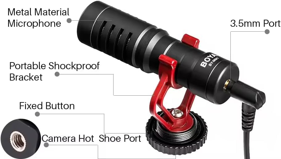 - صغير الحجم وقابل للحمل: هيكل خفيف الوزن مع تصميم مضاد للصدمات باللون الأحمر والأسود يجعل من السهل حمله واستخدامه لمدونات الفيديو والمقابلات والصحافة المتنقلة