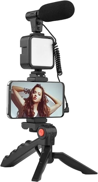 Generic - مجموعة مدونات فيديو للموبايلات الذكية تتضمن حامل ثلاثي القوائم وإضاءة ليد وميكروفون خارجي وحامل موبايل لإنشاء المحتوى وتسجيل الفيديو
