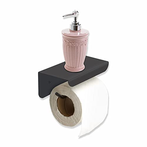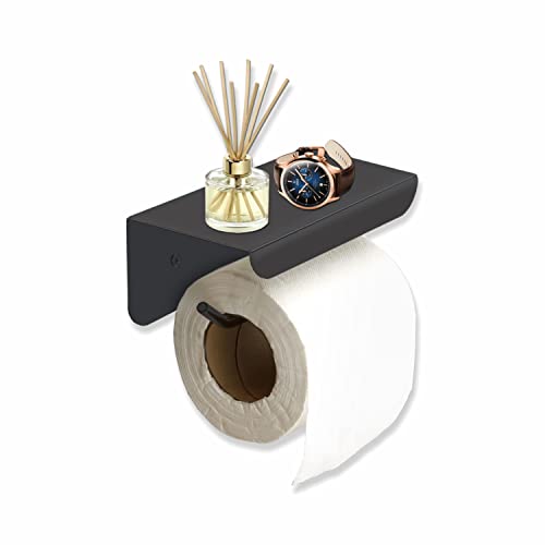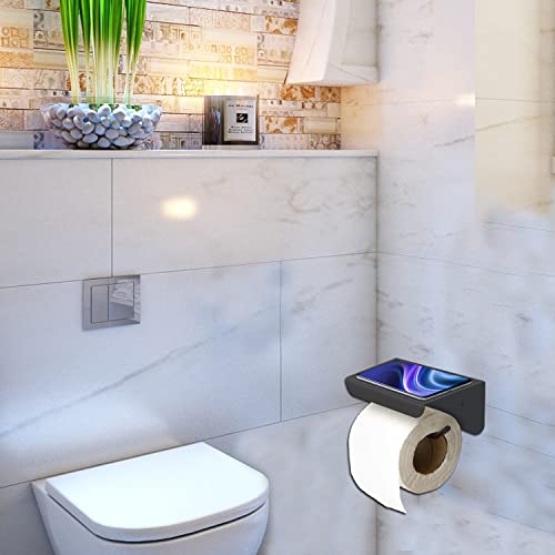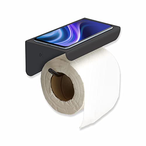 SmartSlide - حامل ورق تواليت من الفولاذ المقاوم للصدأ مع رف بتصميم سهل التثبيت على الحائط مع حامل موبايل من سمارت سلايد
