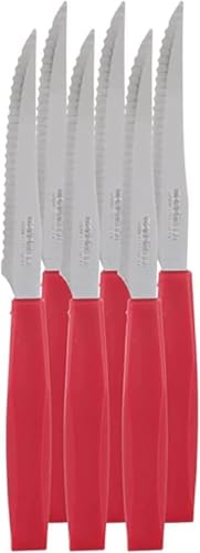Generic - طقم سكاكين من الستانلس ستيل مع مقابض بلاستيك من سمارتي - عبوة من 6 قطع- احمر وفضي