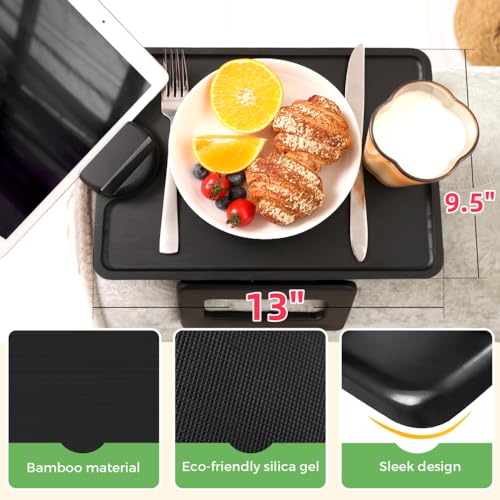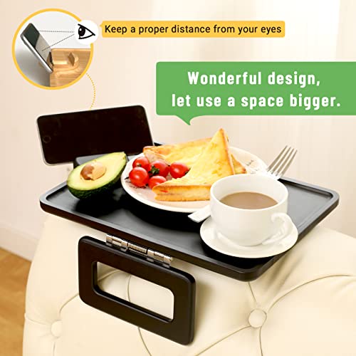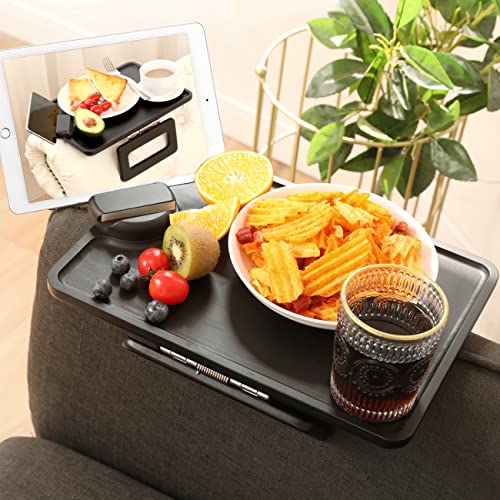 Smatdecis - صينية طعام للوضع على مسند ذراع الكنبة كبيرة الحجم متعددة الوظائف مزودة بحامل موبايل دوار 360 درجة بقبضة قوية للغاية من سماتديسيس