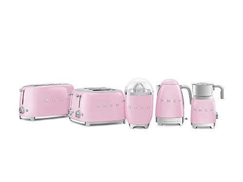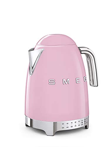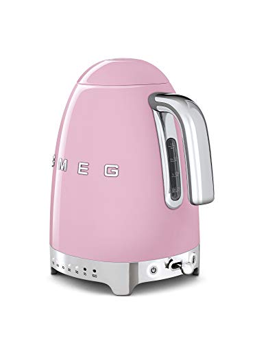 Smeg - غلاية كهربائية من سميج باللون الوردي، مصنوعة من الفولاذ غير القابل للصدأ، مع 7 إعدادات للحرارة وقاعدة دوارة وفلتر قابل للإزالة، سعة 1.7 لتر
