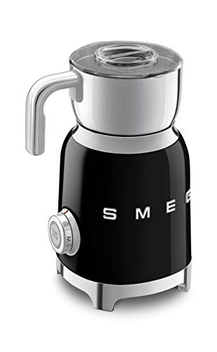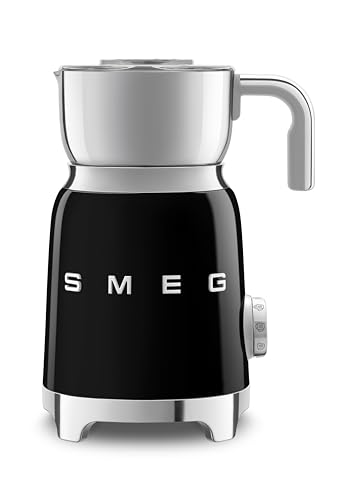 Smeg - ماكينة صنع رغوة الحليب الأوتوماتيكية من سميغ بنمط الخمسينيات مع 8 وظائف، 500 مل مع رغوة لاتيه ساخنة وباردة وكابتشينو وحليب دافئ وشوكولاتة ساخنة، أسود، MFF11BLUK