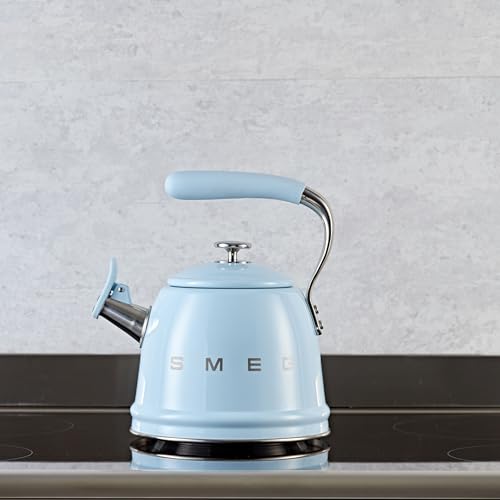 Smeg - براد شاي بصفارة مناسب للاستخدام على الموقد من سميغ، 2.3 لتر (لون أزرق باستيل)