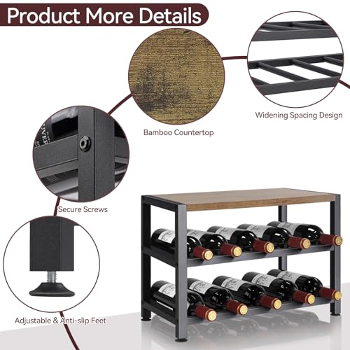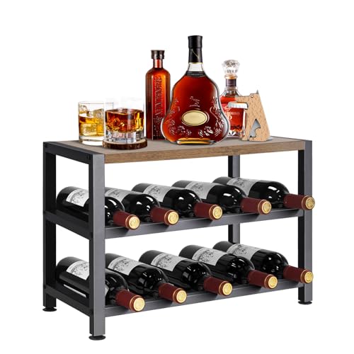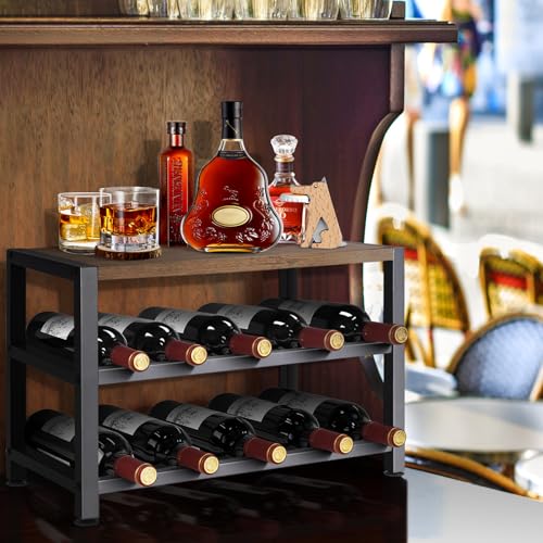 SMFANLIN - رف مشروبات من طبقتين سعة 10 زجاجات مصنوع من الخشب، رف قائم بذاته مع طاولة من سمفانلين، حامل معدني لتخزين المشروبات، رف عرض للمطبخ وخزانة المؤن