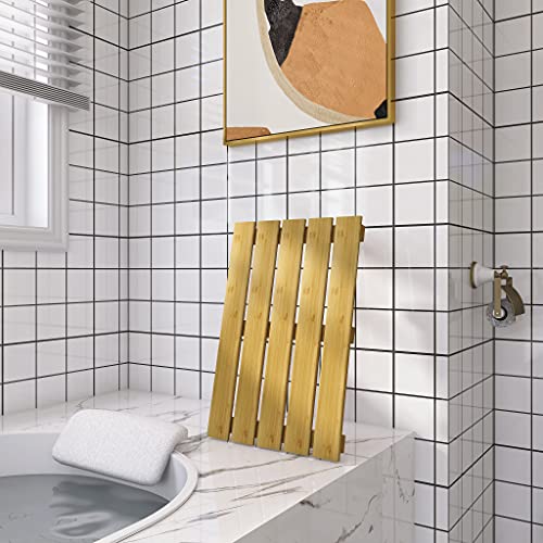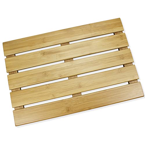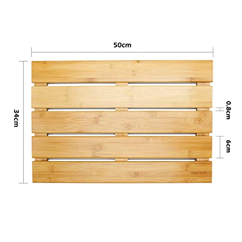 SMIBUY - سجادة حمام من الخيزران، سجادة أرضية دش غير قابلة للانزلاق للاستخدام الداخلي والخارجي من سميبي، 50 × 34 سم، طبيعي