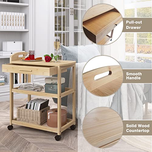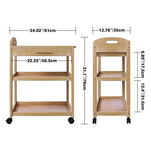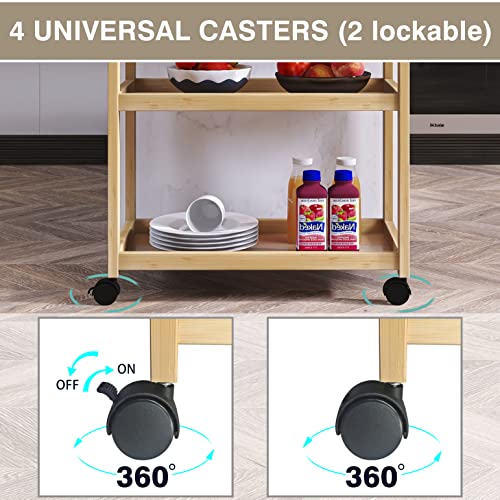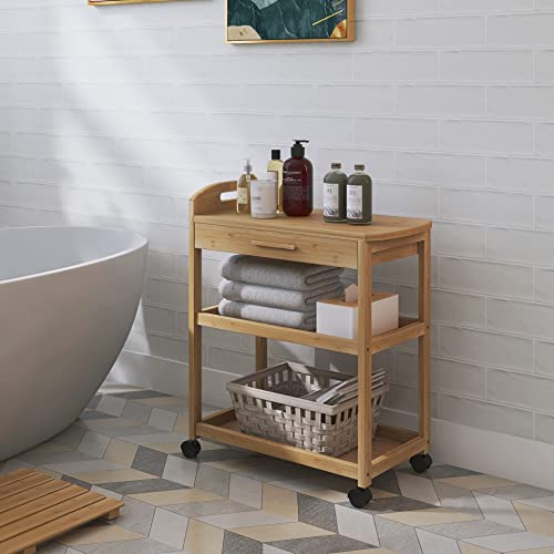 SMIBUY - عربة تقديم للمطبخ من الخيزران، عربة تخزين من 3 طبقات، رف منظم للحمام متعدد الاستخدامات على عجلات، رف تخزين دوار من سميبي، (طبيعي)