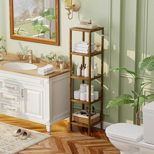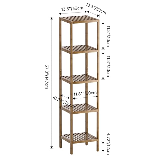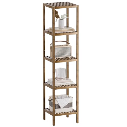 SMIBUY - رف تخزين للحمام، منظم رفوف من خشب البامبو من 5 مستويات، وحدة رفوف متعددة الوظائف لغرفة المعيشة وغرفة النوم والمطبخ من سميباي بلون خشب الجوز