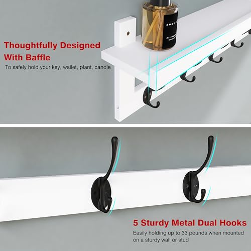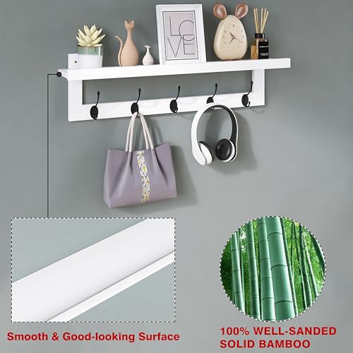 SMIBUY - شماعة جواكيت وبالطو مع رف تثبت على الحائط 74 سم، رف تعليق من البامبو بـ 5 خطافات معدن مزدوجة للحمام وغرفة النوم والمطبخ وغرفة المعيشة من سماي باي، أبيض وأسود