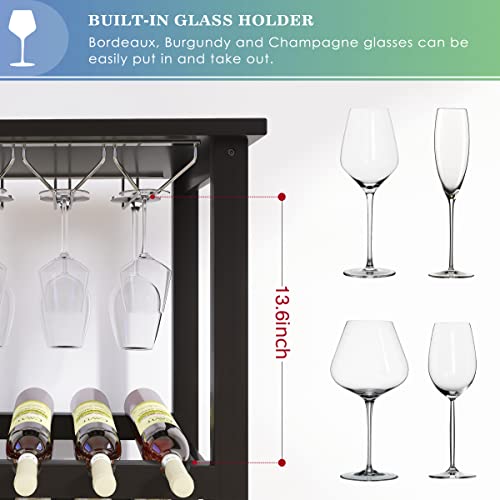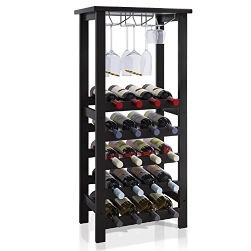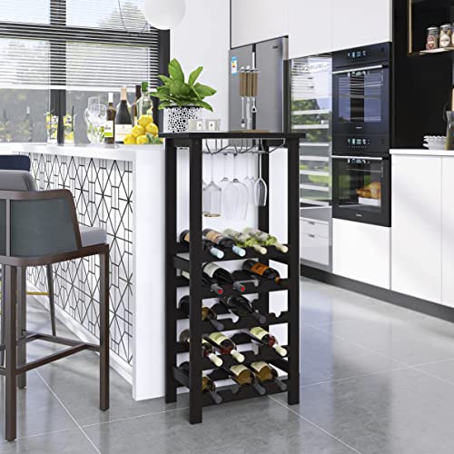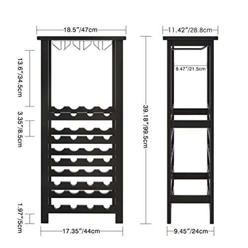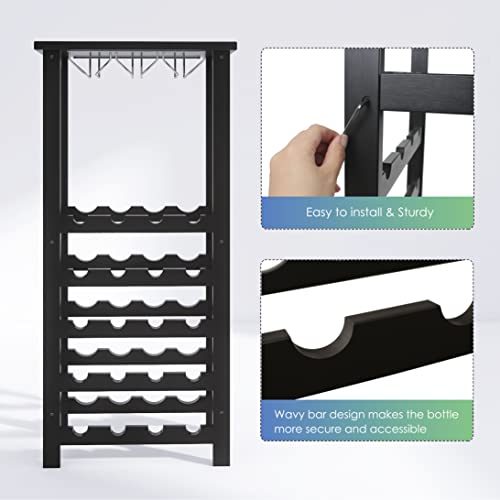 SMIBUY - حامل زجاجات مشروبات وكؤوس برفوف وسطح طاولة من سميبي، لتخزين 20 زجاجة، رفوف عرض قائمة بذاتها من الخيزران للمنزل والمطبخ والمخزن والقبو والمقهى (لون أسود)