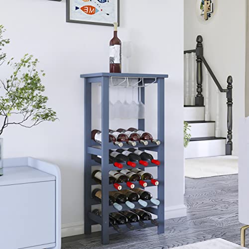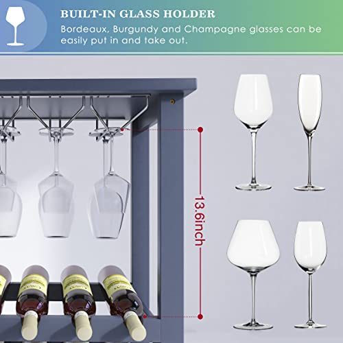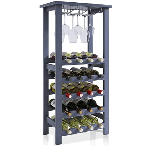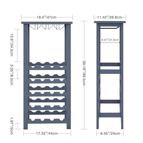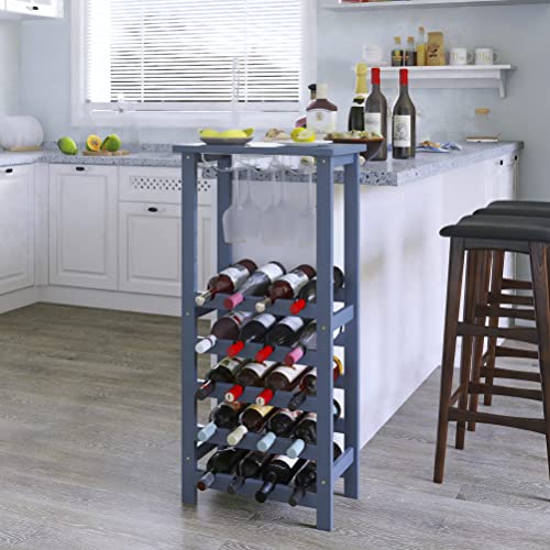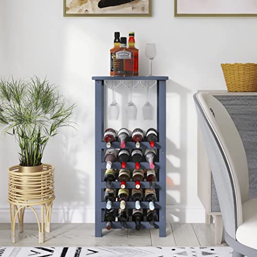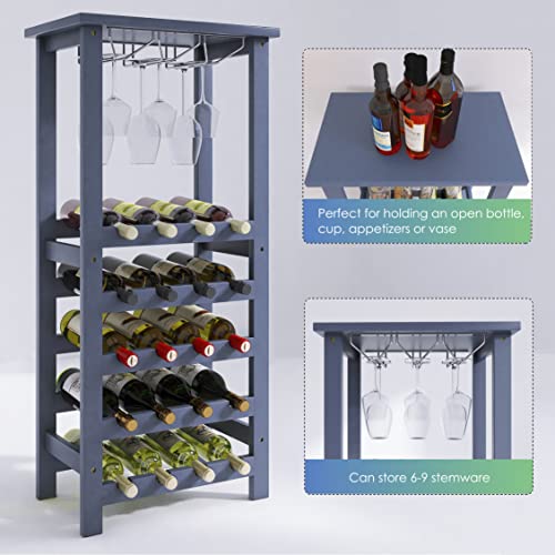 SMIBUY - سميبي رف مشروبات مع حامل زجاجي وسطح طاولة، تخزين 20 زجاجة، ارفف عرض قائمة بذاتها من الخيزران للمنزل والمطبخ والمخزن والقبو والبار (رمادي)