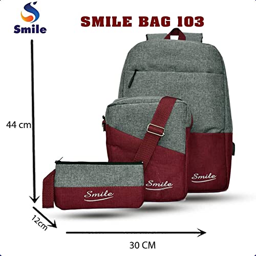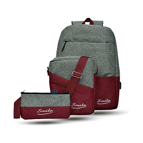Generic - شنطة ظهر سمايل سمارت، شنط من 3 قطع عالية الجودة للاب توب والعمل والسفر والمدرسة مناسبة للجنسين، رمادي/أحمر داكن, متعدد