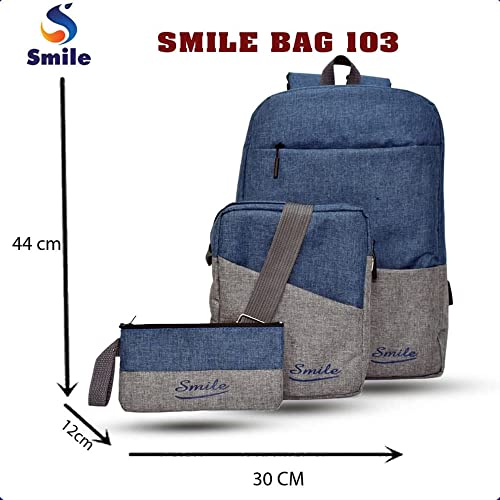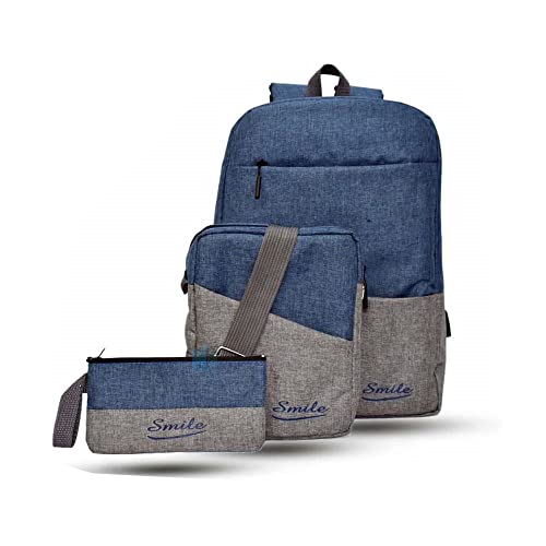 Generic - شنطة ظهر للعمل واللاب توب والسفر والمدرسة والكتب للجنسين من 3 قطع لون رمادي - أزرق من سمايل, متعدد