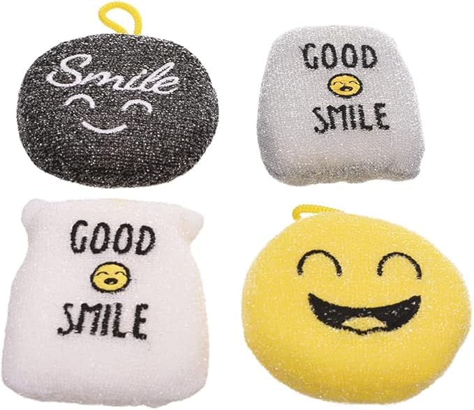 Generic - مجموعة إسفنجات تنظيف بتصميم وجه مبتسم وكلمة smile، عدد 4 قطع، متعددة الألوان