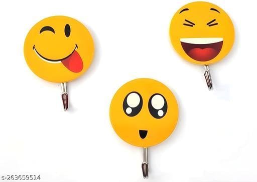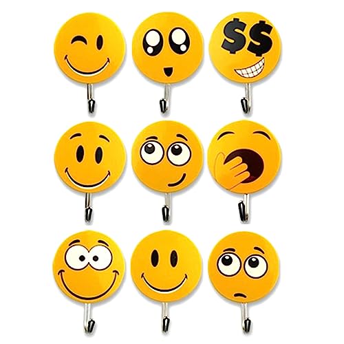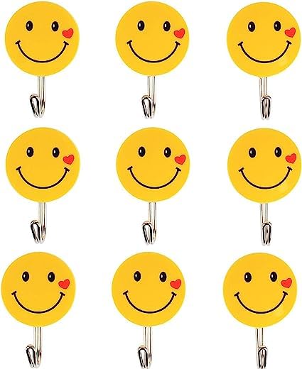 Generic - طقم خطافات ستانلس تعلق على الحائط بتصميم الوجه المبتسم اسمايل، بلاستيك ذاتية اللصق من 9 قطع