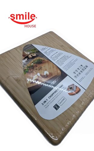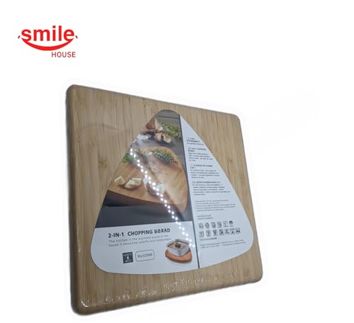 Smile House - لوح تقطيع خشبي 25 سم - شديد التحمل - قاعدة سيليكون ومقابض مضادة للانزلاق