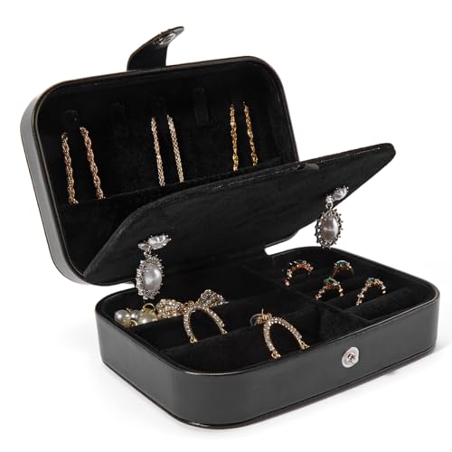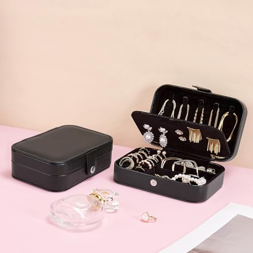 Smileshe - علبة مجوهرات صغيرة محمولة دورين من سمايل شي، من الجلد الصناعي، شنطة مجوهرات للسفر، لتخزين وتنظيم الخواتم والحلقان والسلاسل والأساور