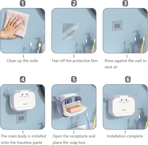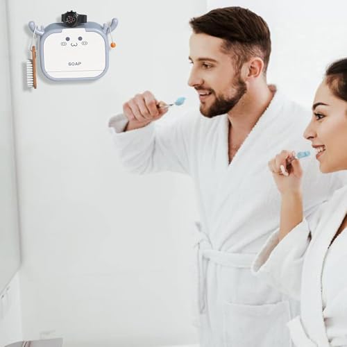 Generic - صبانة حمام بلاستيك بوجه سمايلي – منظم جداري عملي مع درج وصفاية وخطافات لتعليق الفوط بدون حفر