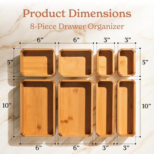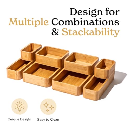 SMIRLY - مجموعة منظم أدراج مطبخ من البامبو للأواني الكبيرة والصغيرة من 8 قطع من سميرلي، صندوق تخزين متعدد الاستخدامات للمجوهرات وأدوات المائدة والسكاكين والتوابل والفوط