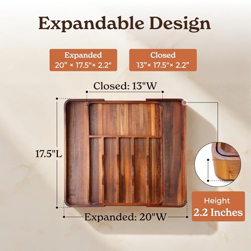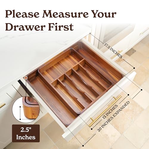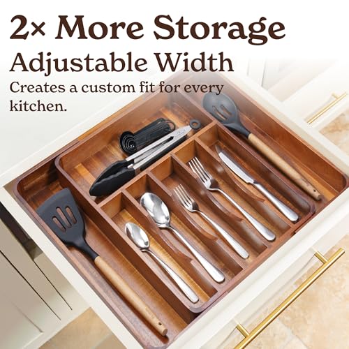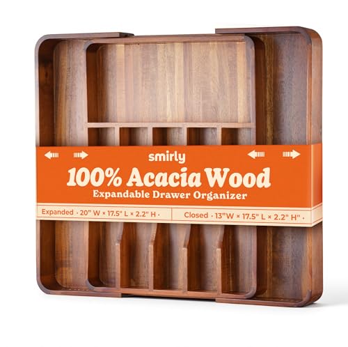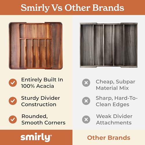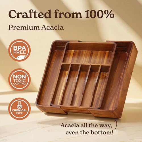 SMIRLY - منظم أدراج من خشب الاكاسيا لأدوات المائدة الفضية للمطبخ، صينية خشب لأدراج الفضيات لتنظيم أدوات تناول الطعام من سيمرلي