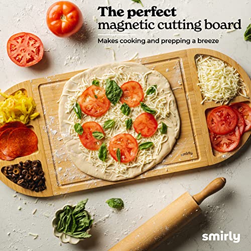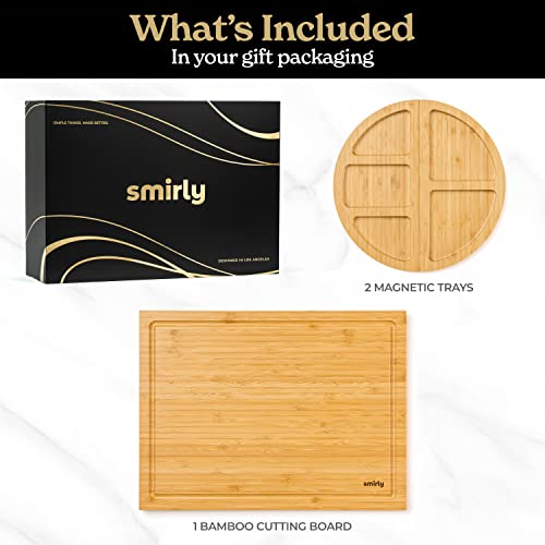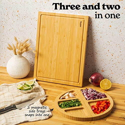 SMIRLY - ألواح تقطيع خشبية من سميرلي للمطبخ - مجموعة ألواح تقطيع من البامبو، مجموعة ألواح تقطيع - لوح تقطيع للمطبخ مع مساحة تخزين - ألواح تقطيع خشبية للمطبخ، لوح تقطيع كبير لتحضير الوجبات