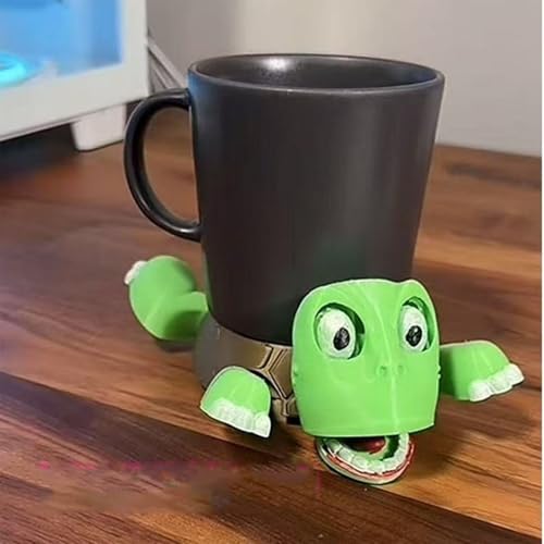 SMMARLAIF - حامل أكواب مضحك مطبوع بتقنية ثلاثية الأبعاد على شكل سلحفاة، قاعدة أكواب سلحفاة فريدة بملامح لطيفة ومضحكة عند وضع شيء على ظهرها لعشاق السلاحف من سمارليف (أخضر فاتح)