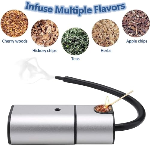 - التدخين السريع: مسدس تدخين الطعام يجعل التدخين سريعًا مع أنواع مختلفة من رقائق الخشب والشاي والأعشاب والتوابل والقش والزهور المجففة. يستغرق الأمر من 3 إلى 5 دقائق فقط لإضافة نكهة الدخان البارد ولمسة نهائية عطرية إلى الطعام أو المشروبات.