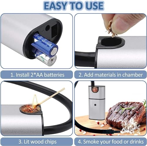 - تصميم سهل الاستخدام: استعد لتدخين أطباقك. ثم اضغط فقط على الزر، يتم تشغيل هذا الدخان البارد ببطاريتين ايه ايه (غير متضمنة). مثالي للاستخدام عند التخييم.