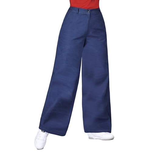 Smoky Egypt - بنطلون كتان مرتفع الخصر بأرجل واسعة مع حزام خلفي أستك من سموكي ايجيبت