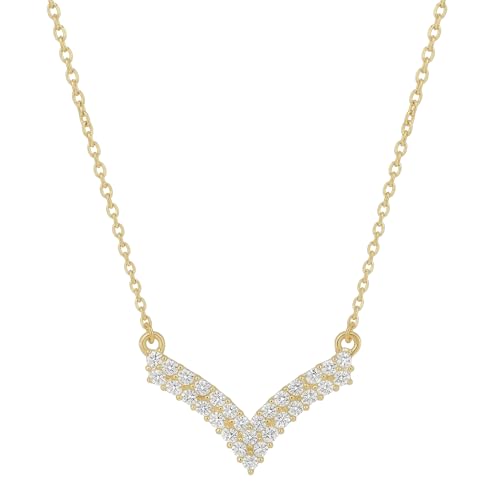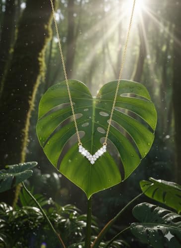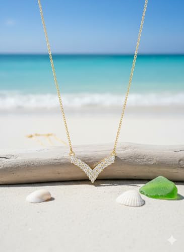 Generic - سلسلة ذهبية ناعمة بدلاية على شكل حرف V مرصعة بالكريستال اللامع | قلادة أنيقة بتصميم خيالي وانيق | من الاستانلس ستيل المقاوم للصدأ | إكسسوار عصري مثالي لتزيين خط العنق